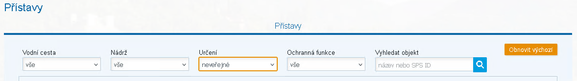 Upřesnění výběry typu určení neveřejné použijte filtrováním v seznamy všech přístavů: