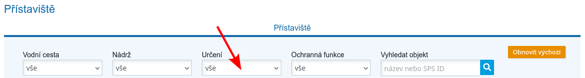 Upřesnění výběru typu určení použijte filtrováním v seznamy všech přístavišť: